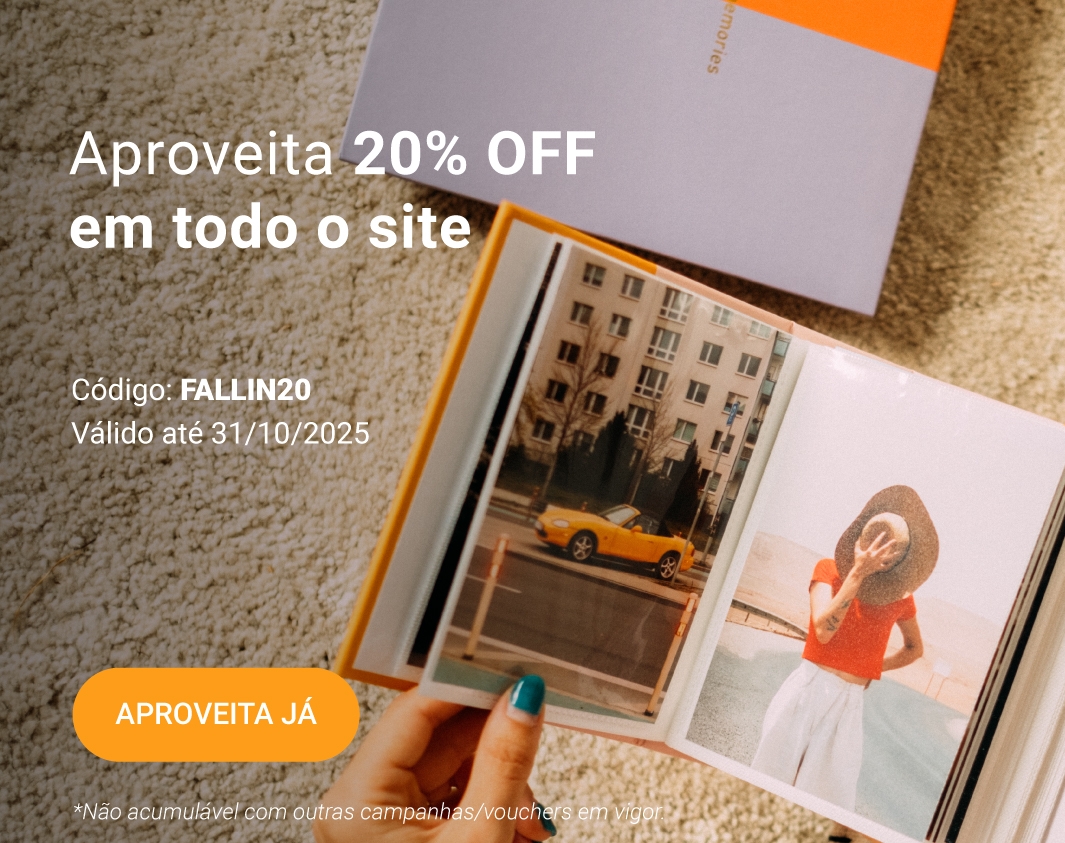 Fotos Standard 10x15cm a partir de 50 unidades e Fotos Standard 15x20cm a partir de 25 unidades estão excluídas de qualquer campanha/voucher em vigor.
